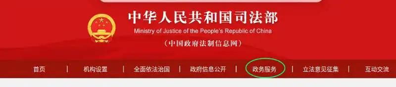 申请人登录“中华人民共和国司法部网站”https://www.moj.gov.cn/
