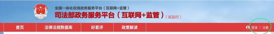 在首页“政务服务”下拉框点击“司法部政务服务平台”